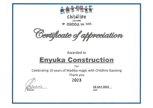 Enyuka Construction Consultants remain committed to Mandela Day, having participated in this initiative for the past 10 years. Enyuka have partnered with 5FM’s Young Blood 5 to assist charitable organizations in need of assistance.